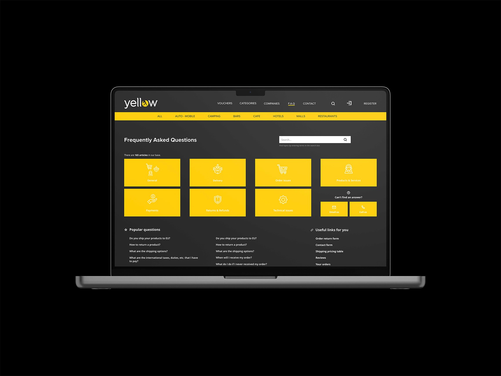 1. Objectives The main challenge of this project was to modernize a legacy brand (Yellow Pages) and introduce a new functional segment while maintaining its historical reliability. Modernizing Heritage Branding: The primary objective was to take the iconic Yellow Pages visual identity (traditionally associated with physical books and older directories) and translate it into a contemporary, sleek digital interface that appeals to a younger, tech-savvy demographic. Information Architecture Optimization: Yellow Pages sections often deal with vast amounts of data. The objective here was to create a "New Section" that simplifies the discovery process, using a clean grid system and intuitive filtering to prevent user overwhelm. Visual Refresh (Yellow & Dark Mode): To move away from the "cluttered" look of traditional directories, the design aimed to use the brand's signature yellow as an accent/action color rather than a dominant background, often pairing it with dark themes or clean white space to create a "premium" feel. Action-Oriented UI: A key goal was to reduce the "friction" between searching and contacting. The UI was designed to make contact buttons (Call, Map, Website) the most prominent elements in the card layouts.